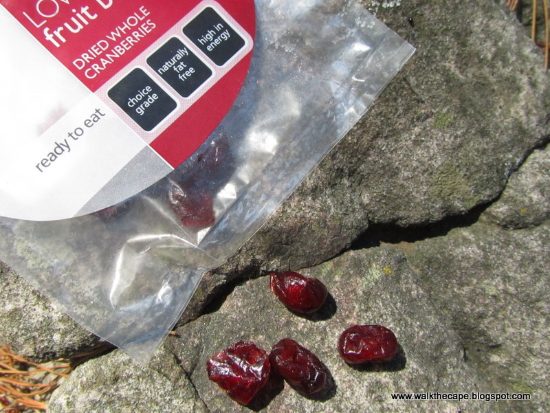 I've developed a liking for dried cranberries. Nibbled on these ones in Newlands Forest, after completing the Woodcutter's Trail.